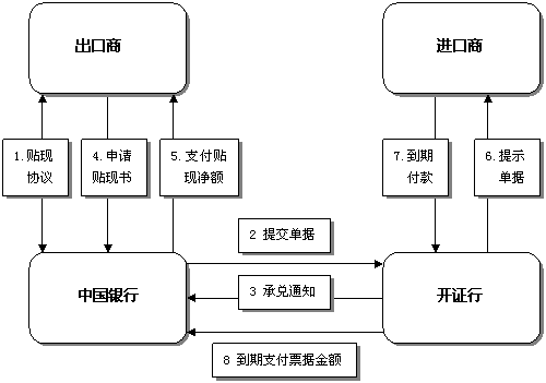 4.我行在收到承兌/承付后,客戶應(yīng)向我行提交業(yè)務(wù)申請書,將貼現(xiàn)款項入出口商賬戶。