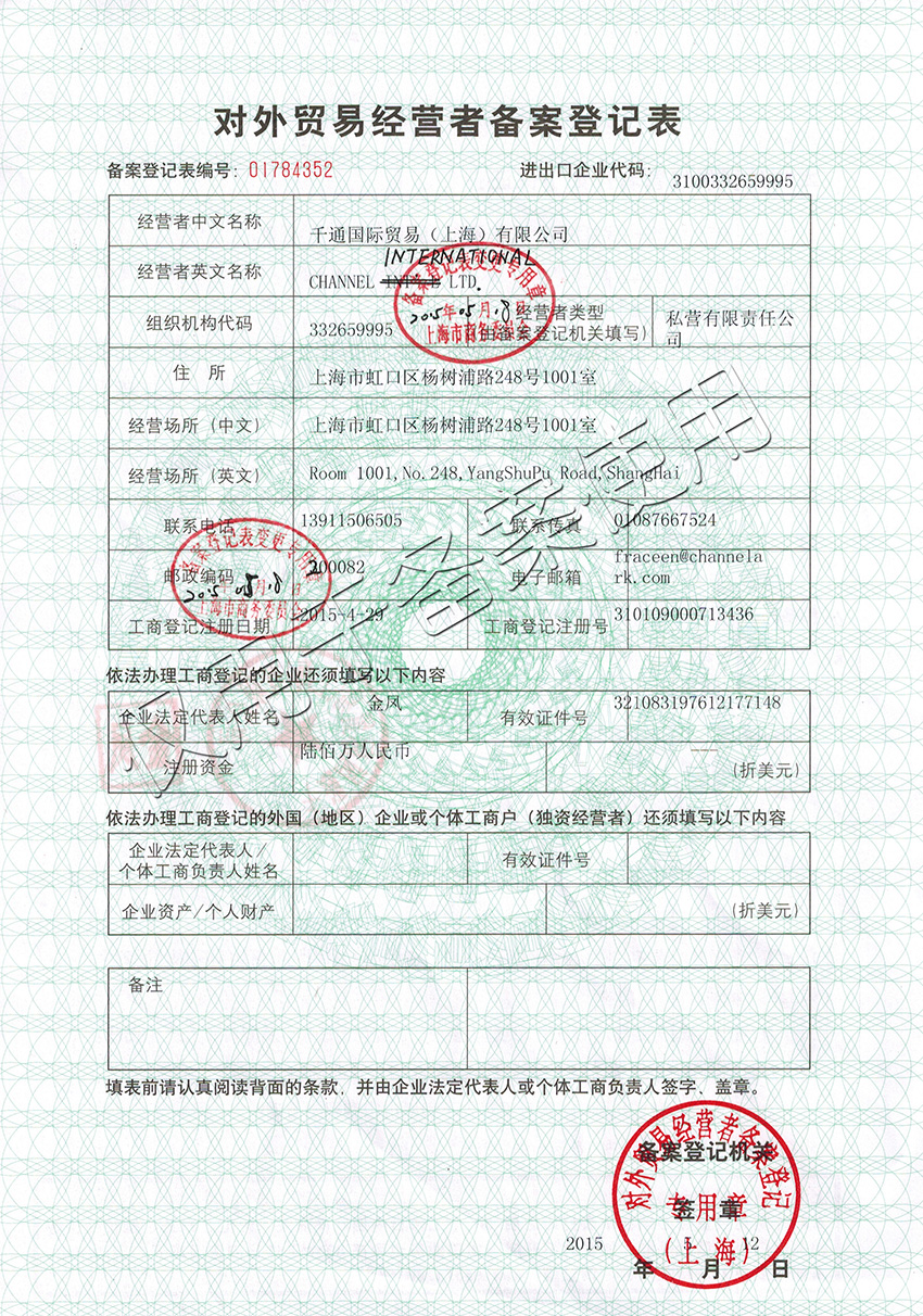對外貿(mào)易經(jīng)營者備案登記表